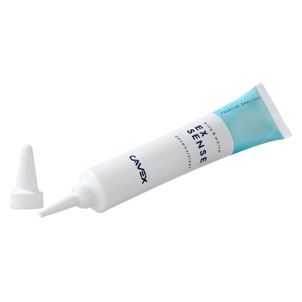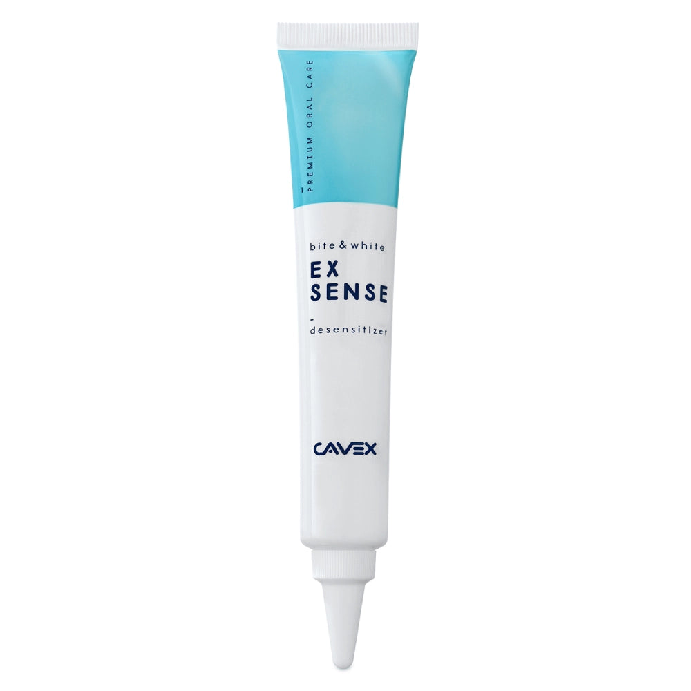 El Cavex ExSense es un gel desensibilizante y acondicionador dental especialmente formulado para aliviar la hipersensibilidad dentinaria y favorecer la remineralización tras tratamientos como el blanqueamiento. Su fórmula combina hidroxiapatita al 2% y nitrato potásico al 0,1% en una base de gel de fácil aplicación y agradable aroma a menta, proporcionando alivio rápido y ayudando a sellar microtúbulos dentinarios.