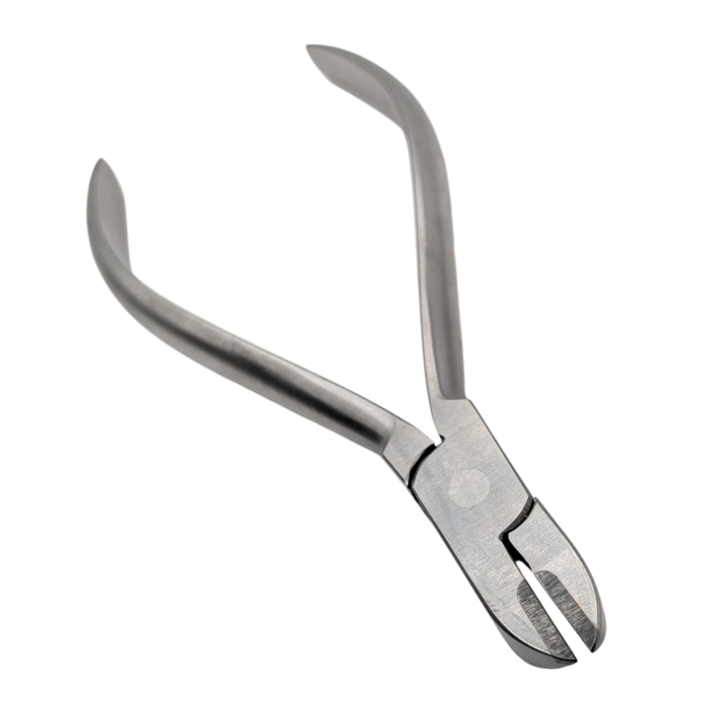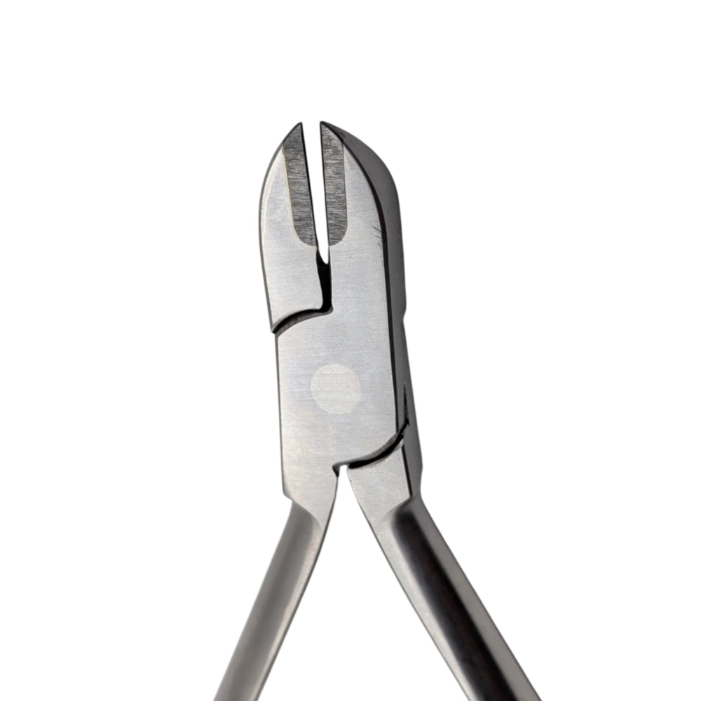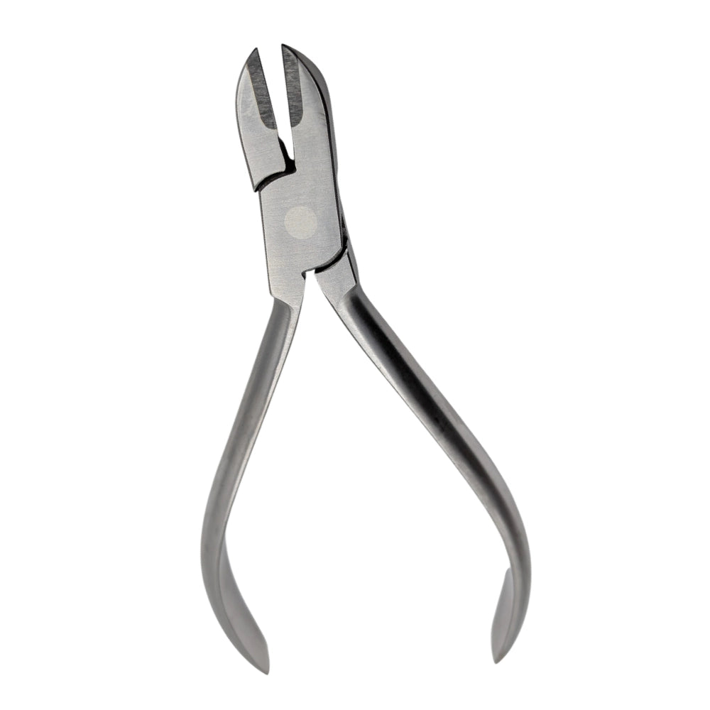 Este alicate ha sido diseñado específicamente para realizar el corte preciso de ligaduras metálicas y elásticas en tratamientos de ortodoncia, permitiendo una eliminación limpia y controlada del material sin dañar brackets ni tejidos blandos.